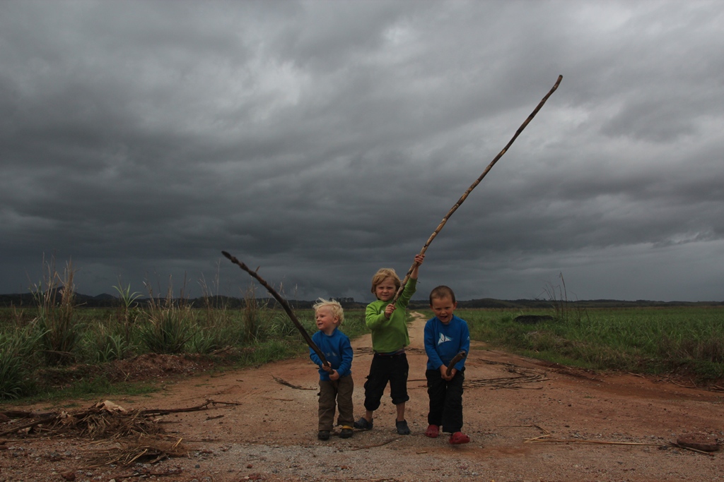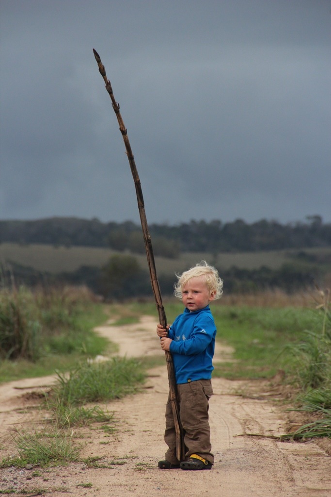 October 19, 2011 in Brazil0 Comments New Road – New Tricks Hardly saw a soul except the road workers on this newly constructed road. Sugar cane sticks doubled up into fishing rods and broomsticks on our lunch break.