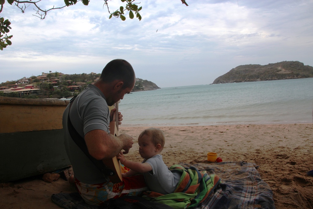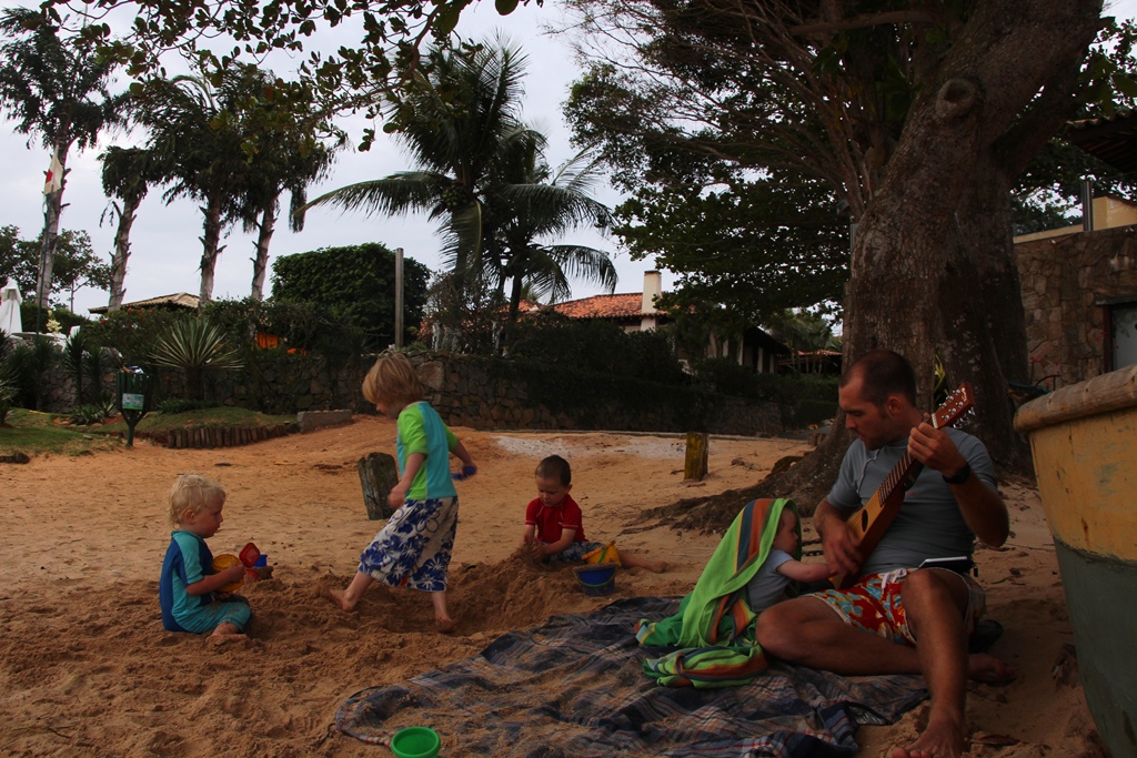 October 13, 2011 in Brazil0 Comments Playing guitar at the beach “Who stole the coconut, who stole the coco… “