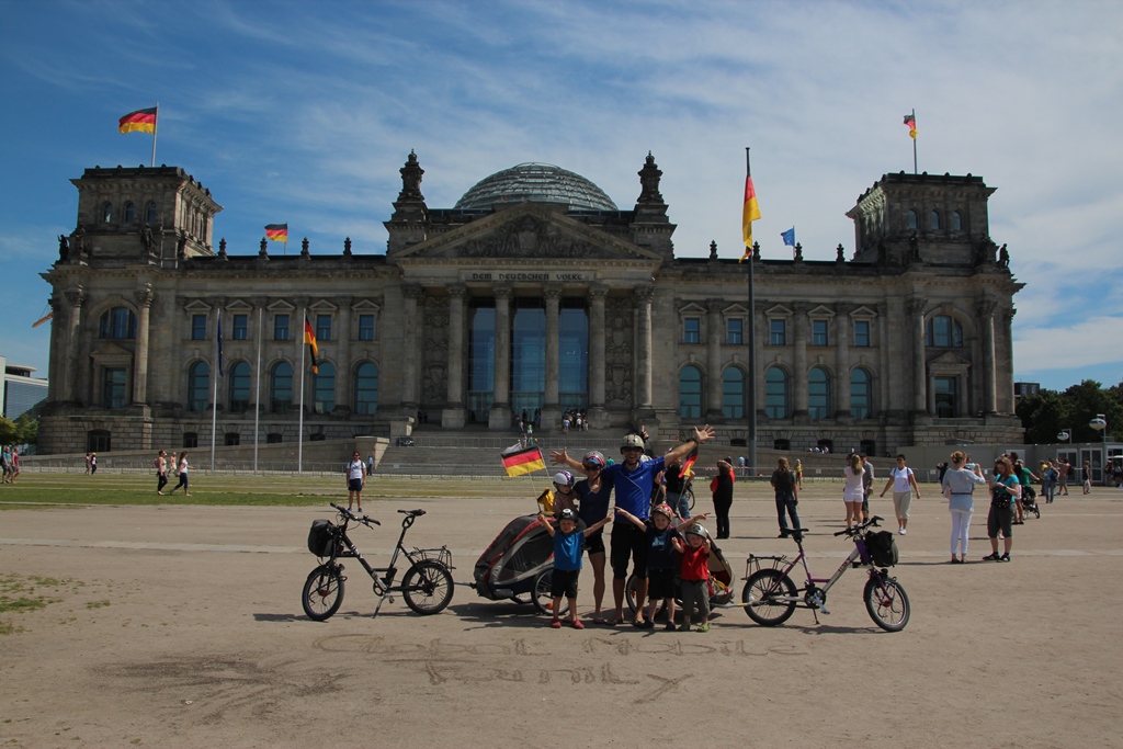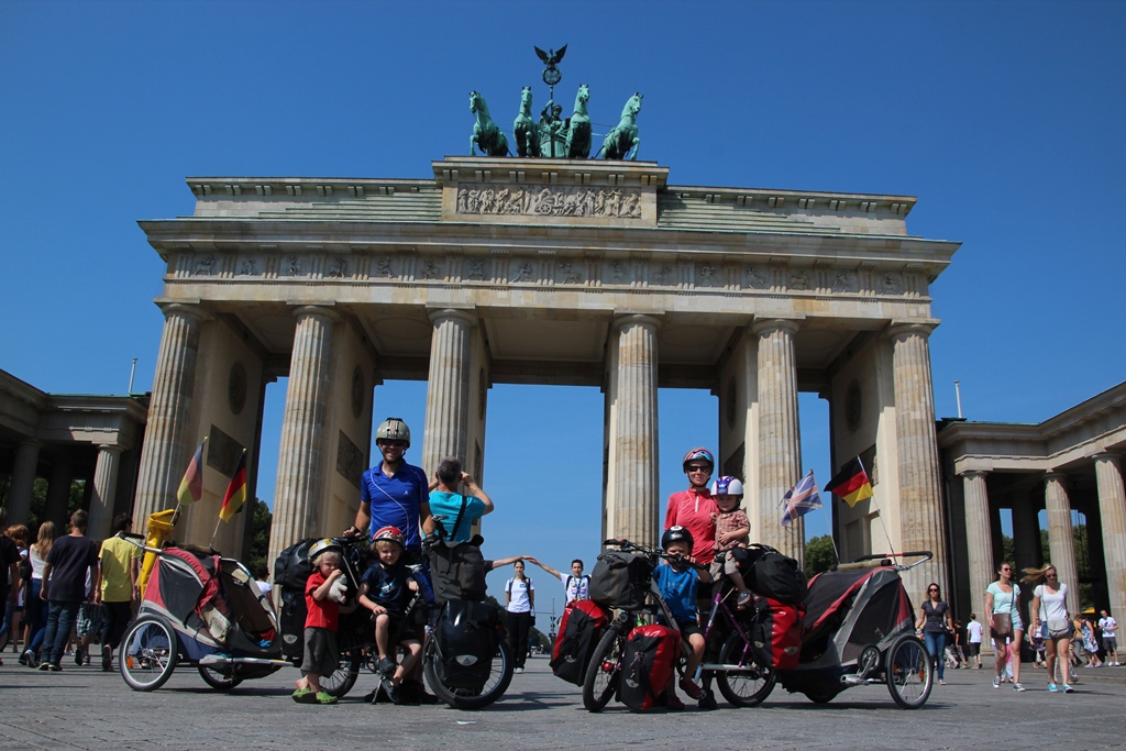 With our well traveled flag. Apart from the spectacular Brandenburg Tor, zero chewing gum on the station floor and getting a stern telling off for going into a shop through the exit serve as a couple of reminders that we are in actual fact in Germany again!