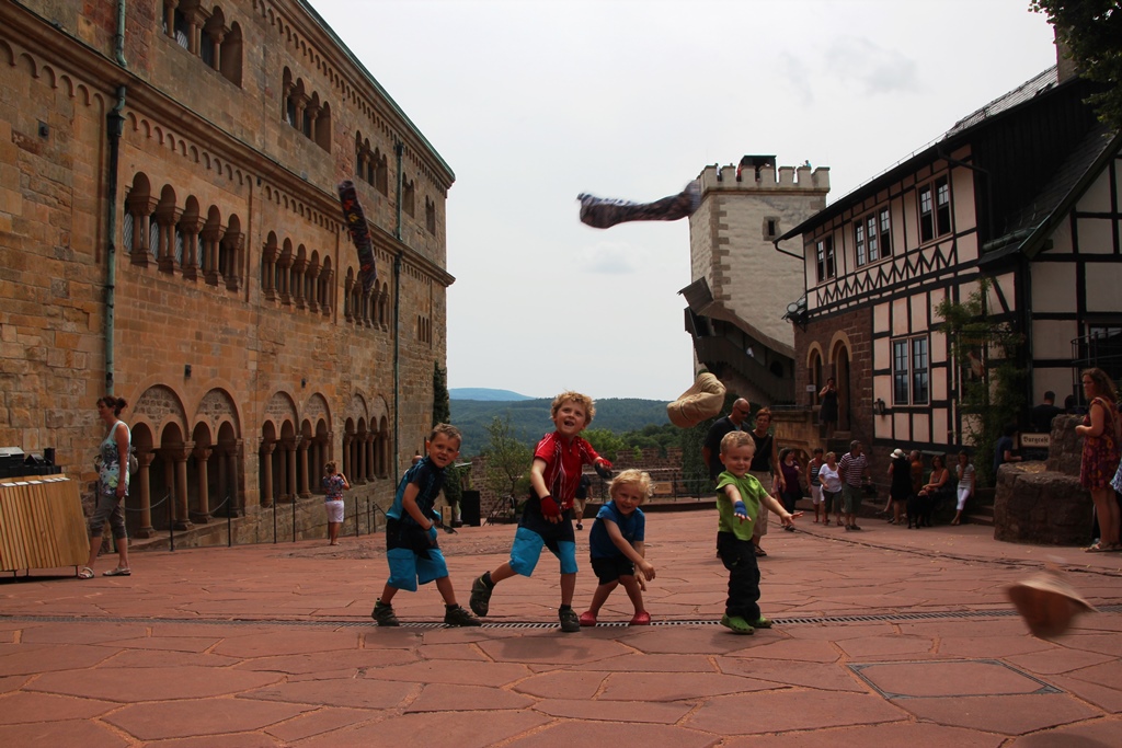 The energy keeps flowing – how do you get four boys to stand in line for a photo? With a hat throwing competition on the Wartburg.