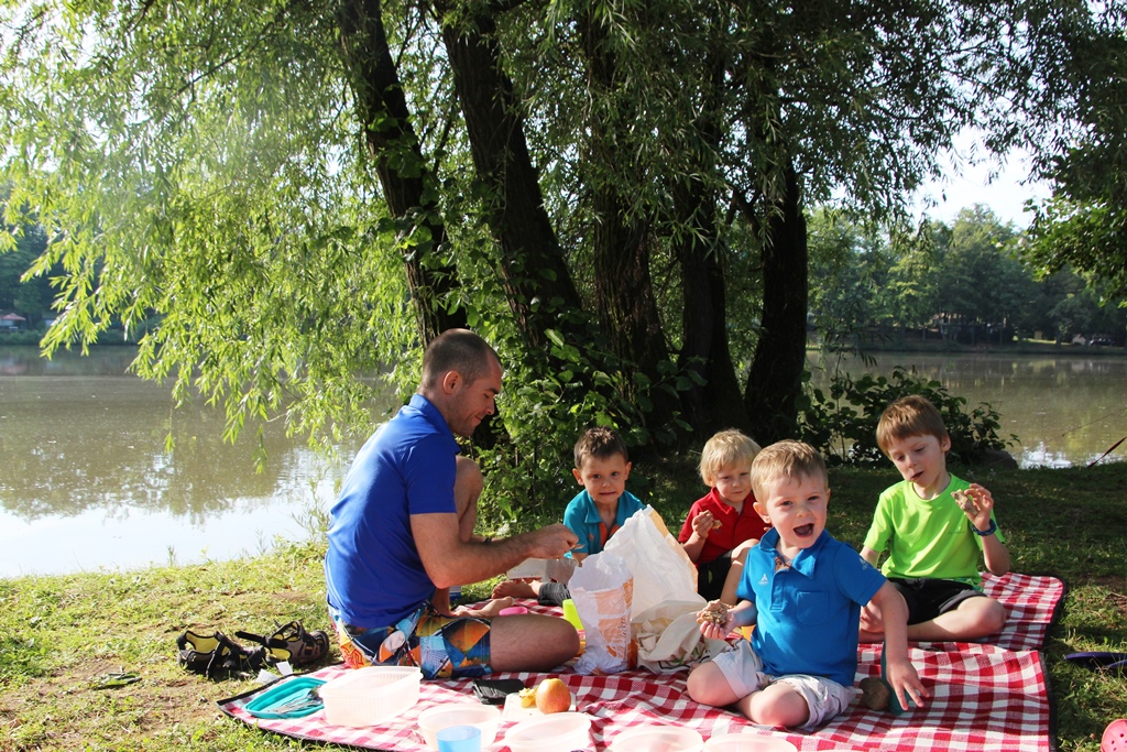 Breakfast at our camping spot by the lake and some boating activities to cool off after the killer hill yesterday.