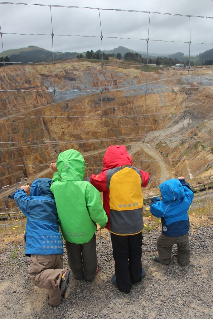 The enormous dump trucks and diggers of New Zealands ex-biggest gold mine looked like toys in this huge hole!