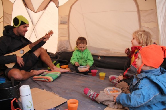 As Papa always finishes first – time to strum a few Childrens Songs to help the food go down.