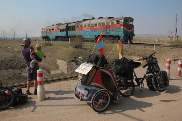 We stopped by this railway crossing to adjust a mudguard on the bike after refilling the tyres and a bit of a battering on the bumpy bus ride. We couldn’t believe how many trains passed by J