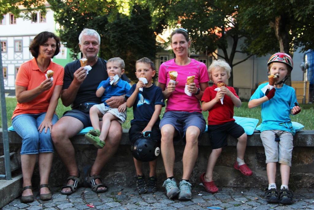On our round bike tour of Erfurt – enjoying homemade icecream and wafers with new friends.