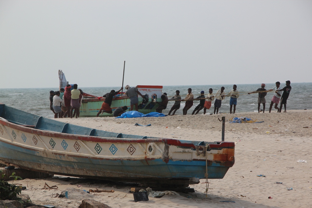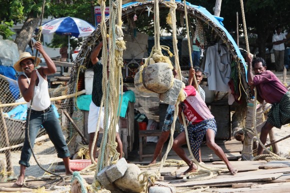 Not quite – but it really sounds like it as the fishermen haul the boat out of the water on rollers they really do shout “Heave Ho!”