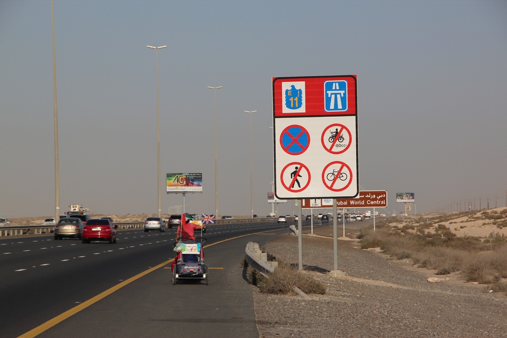 It turns out we’re not allowed to ride on this highway – but there is no alternative route…