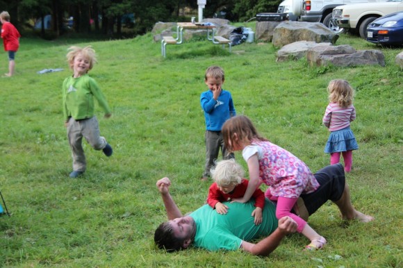 This guy was the most tickled Dad we’ve ever seen! All the children on the campsite joined in for some major tickling.