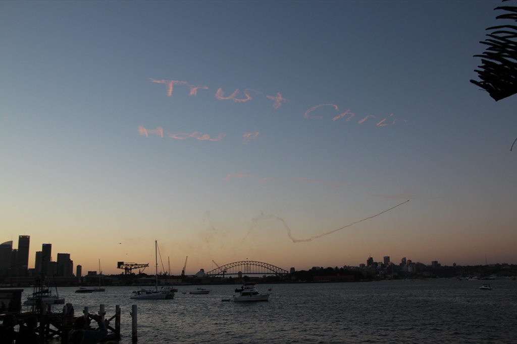 Did you see what he wrote in the sky? Unbelievable that this pilot dived the plane under the Harbour Bridge – this got squeals of delight from boys!