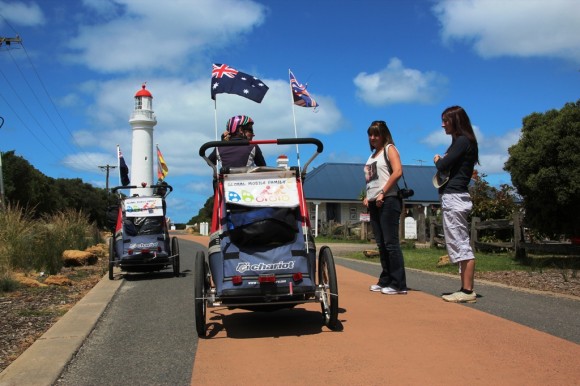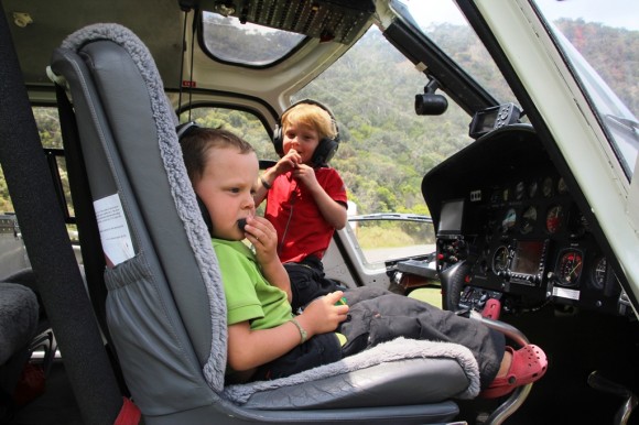 A helicopter landed beside the road and the cool pilot let the boys have a turn in the pilot’s seat.