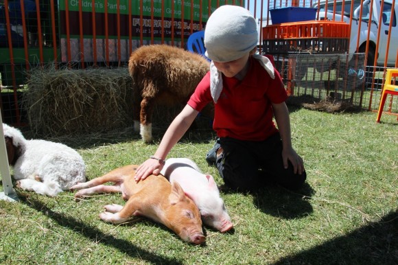 The boys were allowed to gate crash the playgroup party for the last five minutes to stroke the mobile farm animals. They adored holding the rabbits!