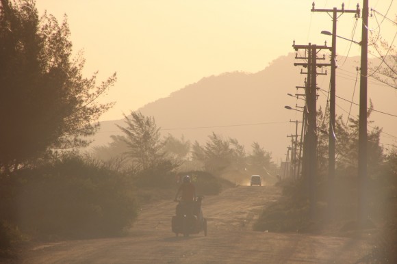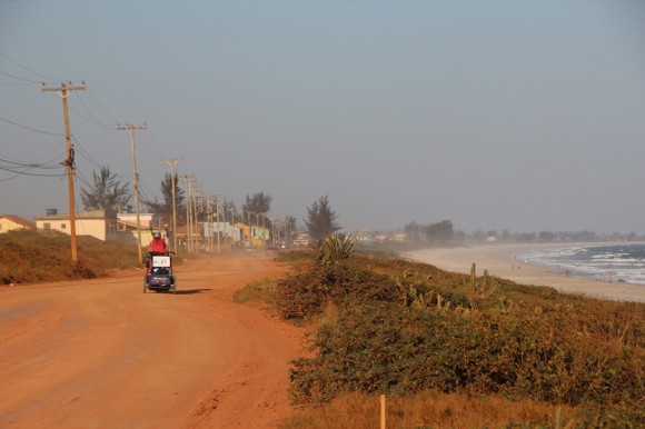 Cycling along the dirt tracks alongside the beaches in Brazil.