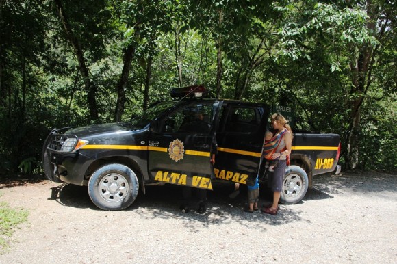 Result! A lift back to Lanquin in Police car instead of walking in the hot sun – muchas gracias seniores.
