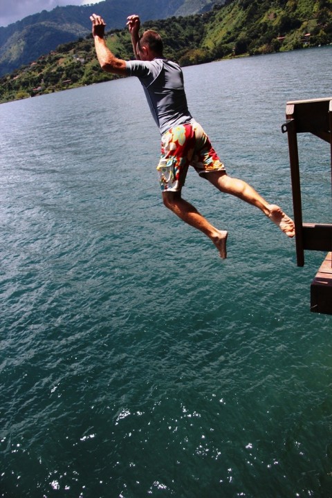 “No! Don’t jump Papa!” … While Papa jumps from a 8m platform Mama takes the calmer entrance to the lake.
