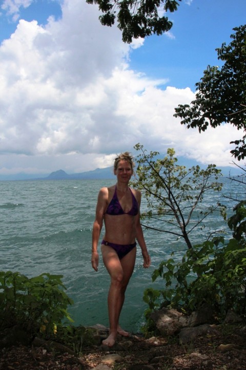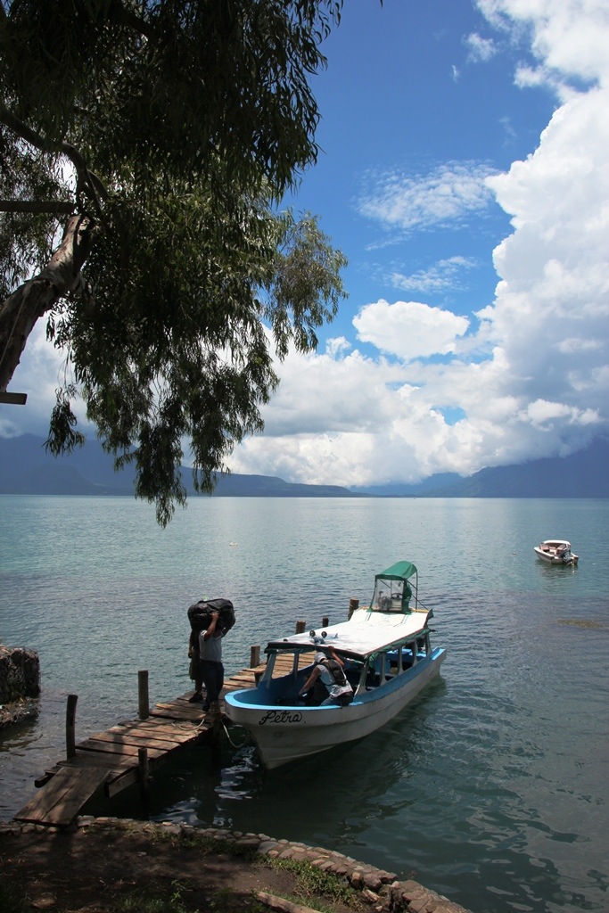This time a boat trip across Lago de Atitlan – a stop to remove plastic from the motor
