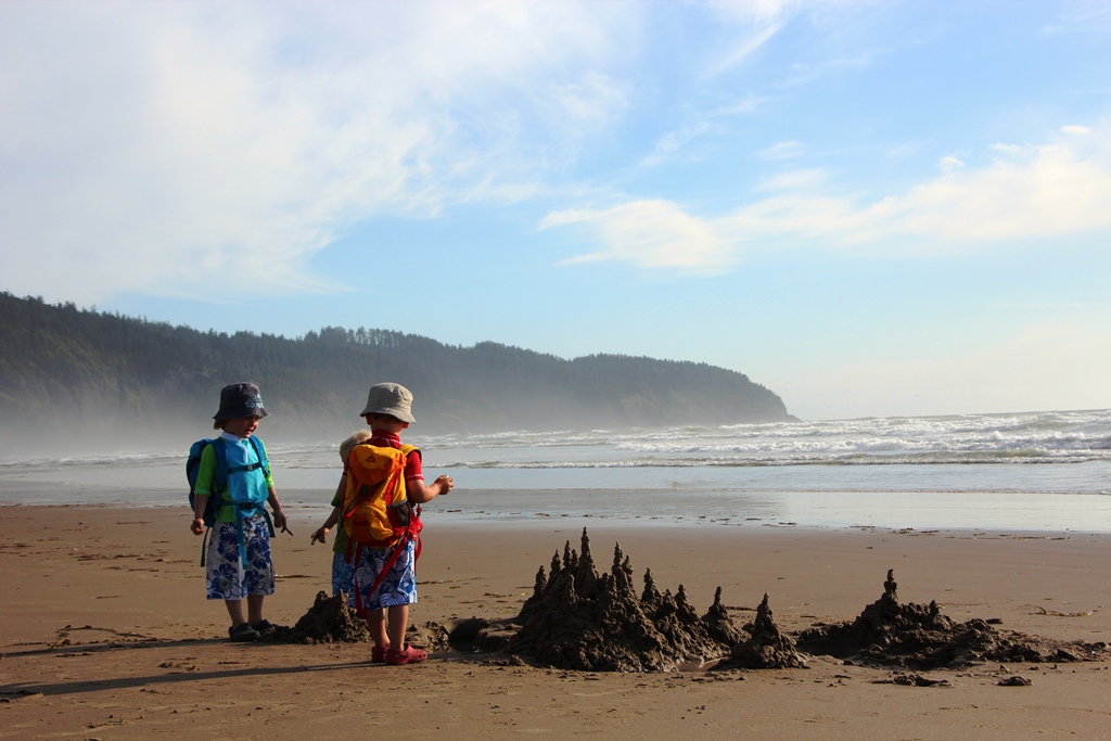 Finally we made it to the Oregon Coast – Cape Lookout: fine white sandy beaches – the boys love the huge sandpits!