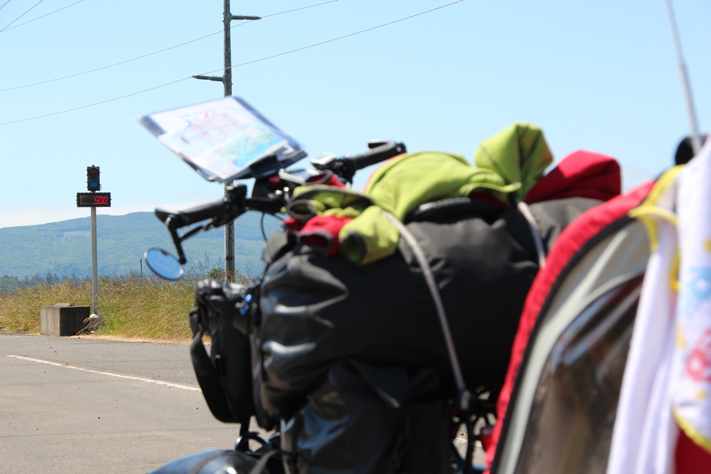 The truck scale shows our weight: 500 pounds (including luggage, bikes, trailers, children – excluding the parents 🙂 )