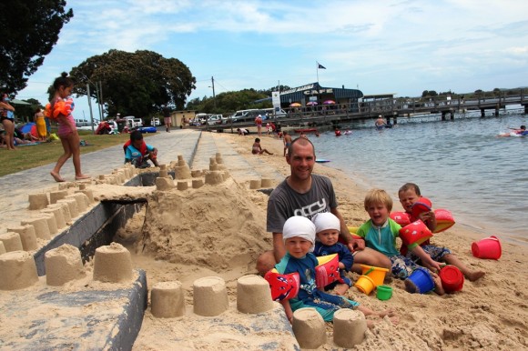 Building a gigantic sandcastle with Papa by the river at Forster.