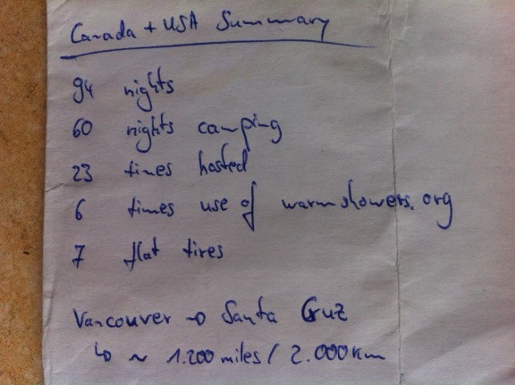 After 50km came the first flat tire along with a friendly fellow cyclist, who on hearing our story spontaneously invited us to camp in his backyard – thanks Doug!