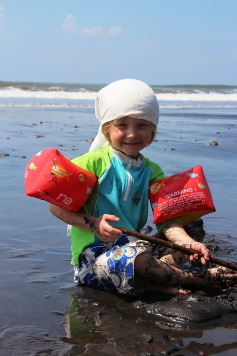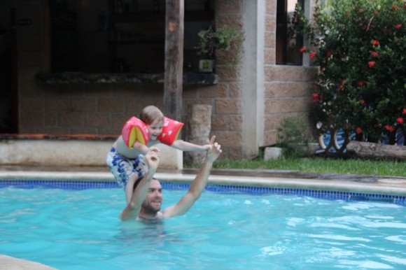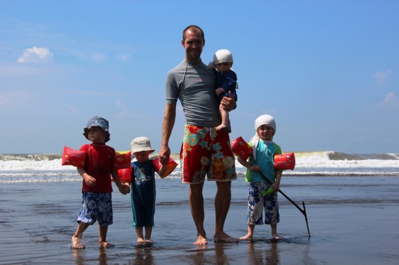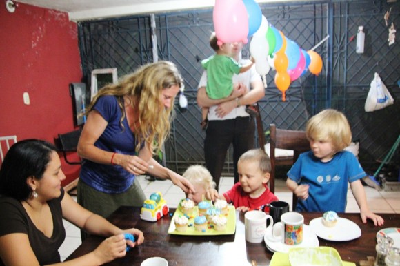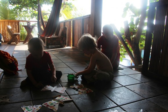Painting butterflies and frogs at Surf Lodge in El Tunco whilst Papa surfs – hee hee!