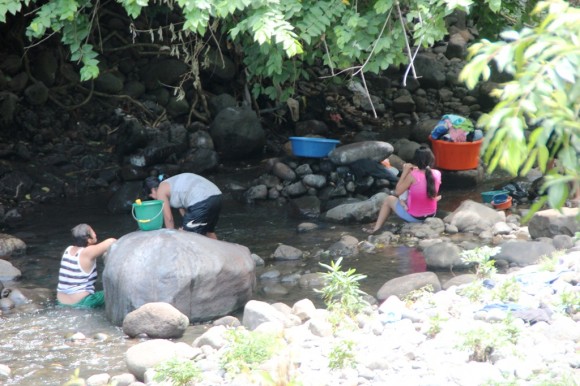A common sight: people washing clothes and themselves in the river.