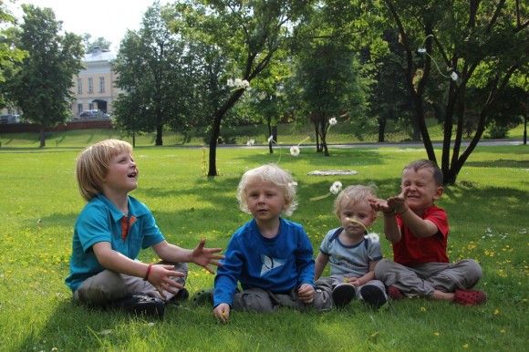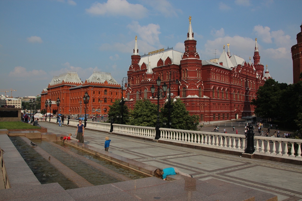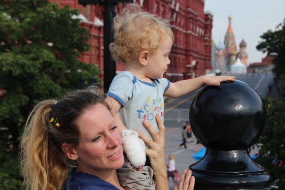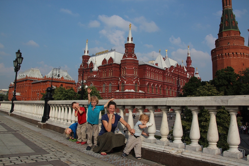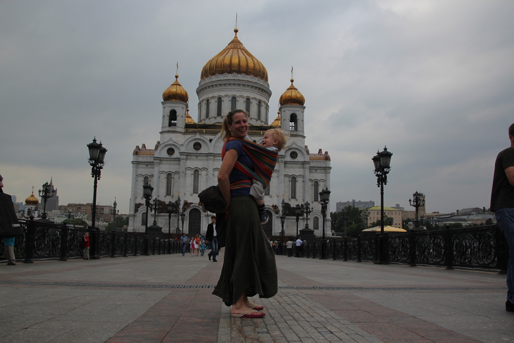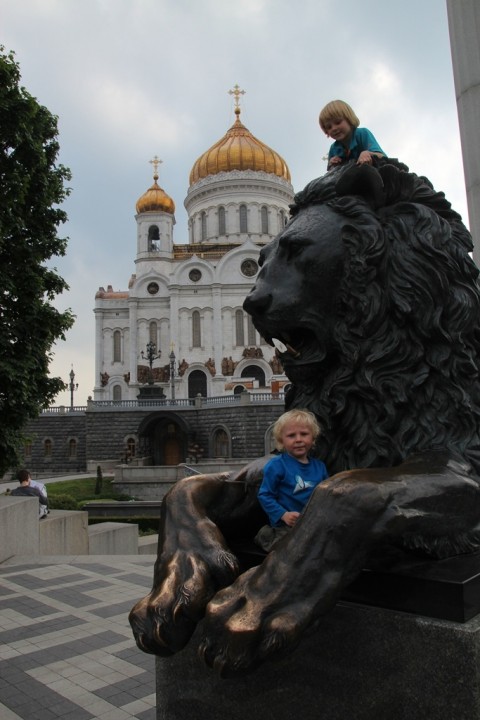 Fits of laughter on the bridge outside The Cathedral of Christ the Saviour.