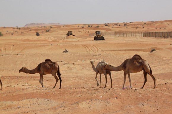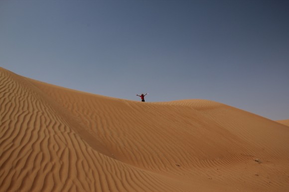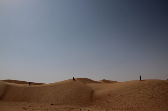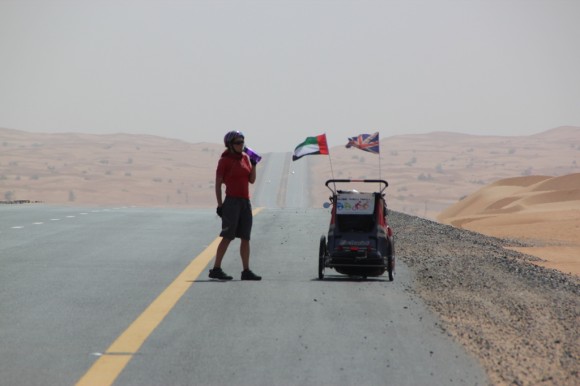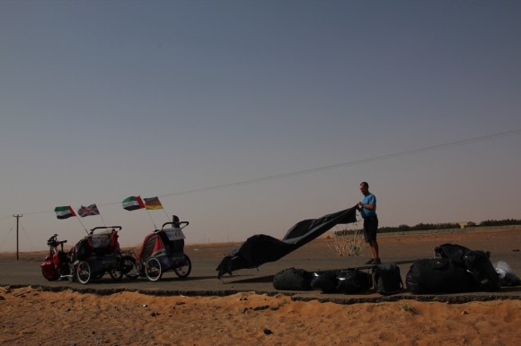 Hot, dusty and dry – time to lighten our load and drink a little from the 30 litres of water that we are carrying.