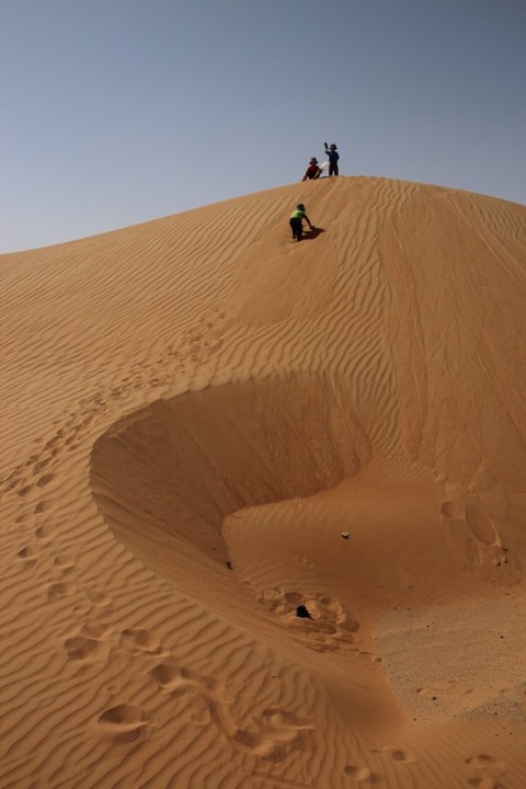 Sand boarding without boards! Loads of silly fun simply climbing, hopping, jumping, throwing and sliding with Crocs and bags. Children adore bathing in sand!