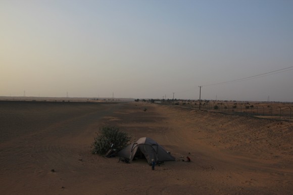 Using huge rocks, bikes, trailers, buckets and bottles filled with sand to hold down the guy ropes – even in this sheltered hollow the sand is still blowing – this sand isn’t like the beach stuff but instead a very fine dust that gets into absolutely everything.