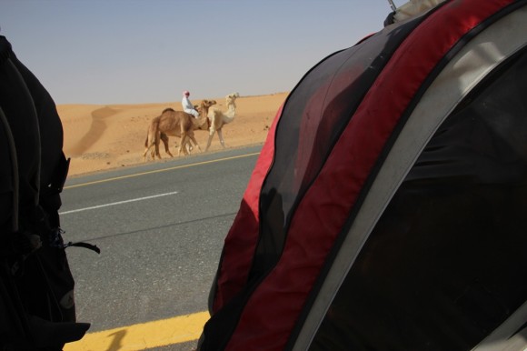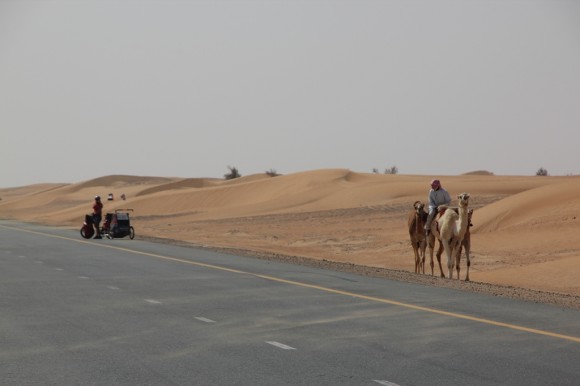 One man and his dog or in this case camels – for us our first sighting.