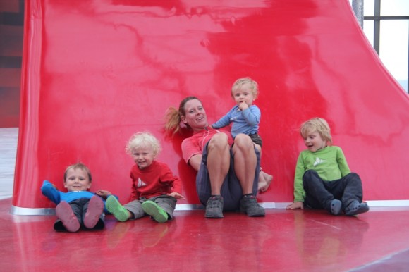 What to do when you arrive in an airport in the middle of the dark dark night – you don’t want to ride – but due to the time difference it would have been 8am where you’ve come from? Power nap required?! Well it turns out the bikes and trailers build a perfect castle in the corner, roll out the isolation mats, get out the activity books and start snoring! Night night!