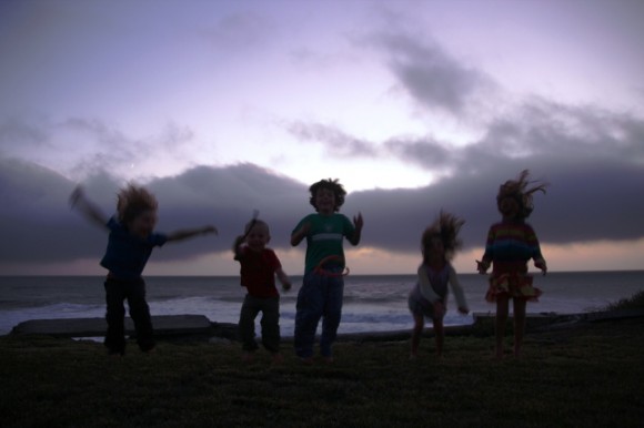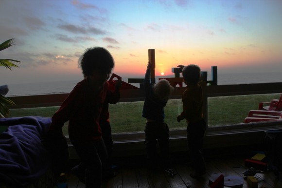 Major construction activity whilst watching the sun going down followed by a crazy running jumping game – children only!