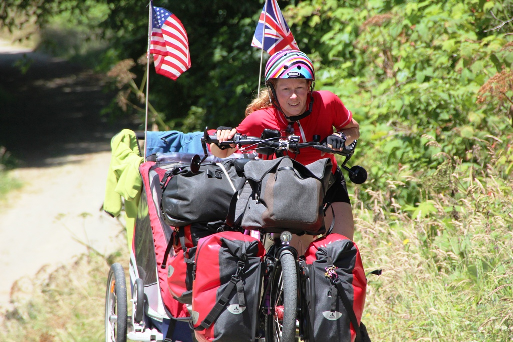 Julie pushing uphill – perhaps more unusal and possibly harder than giving birth for her!