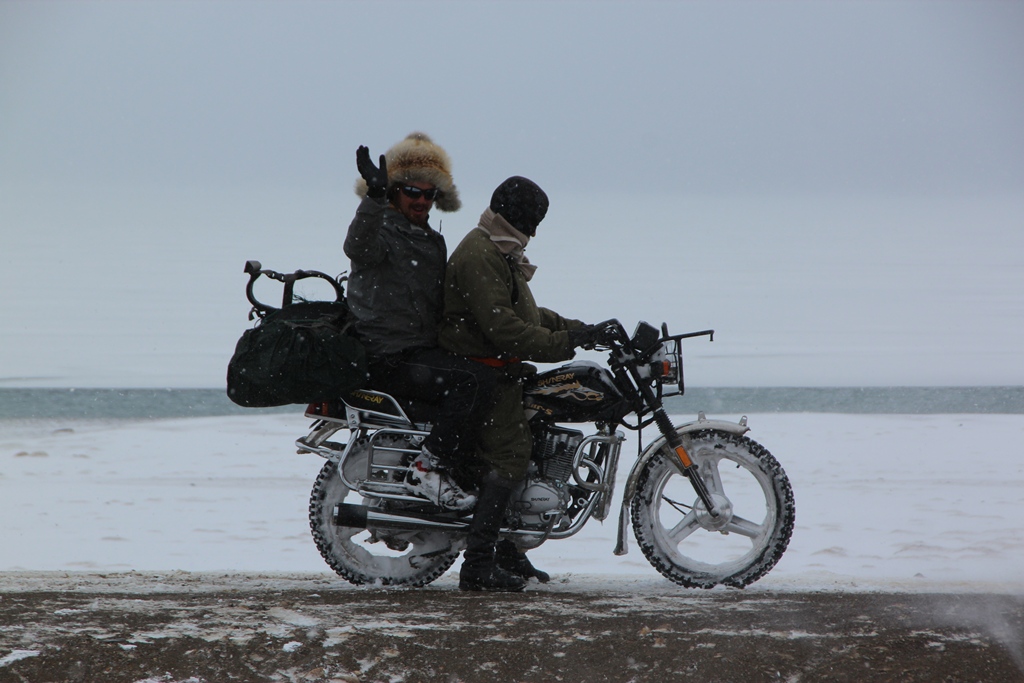 Waving goodbye to Dylan – who got out of his tent this morning and walked 5km through the snow blizzard before he knocked on our door to warm up by the fire.