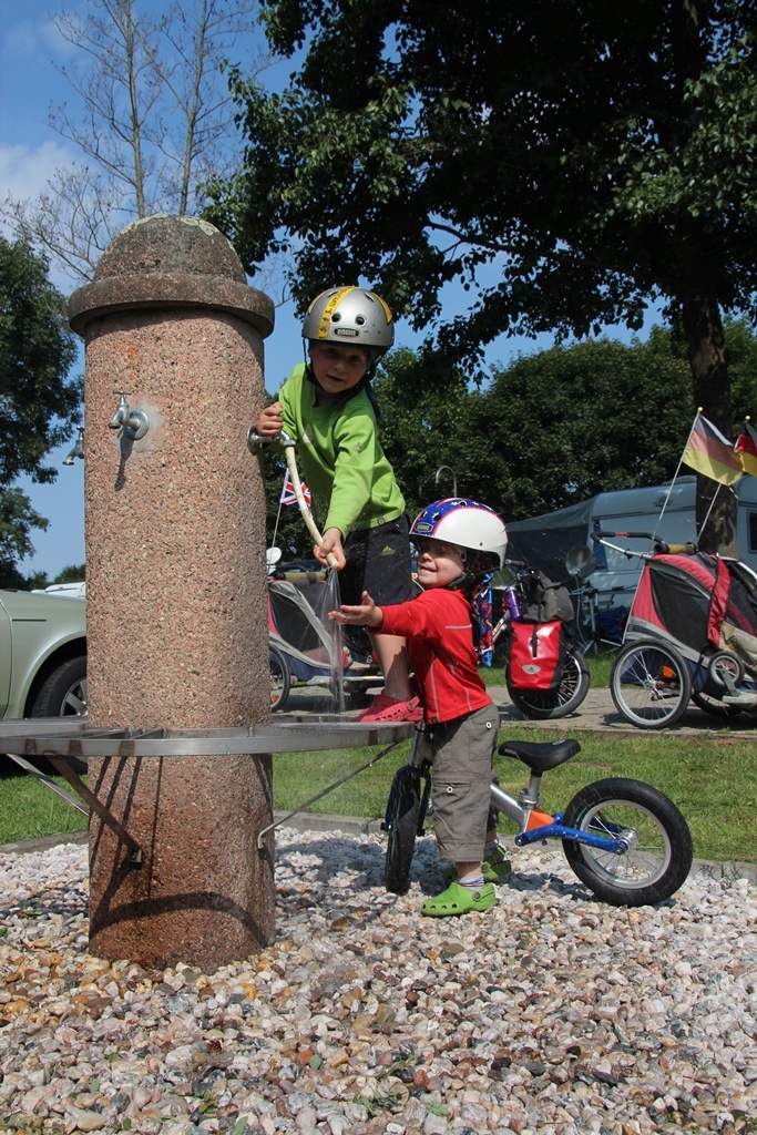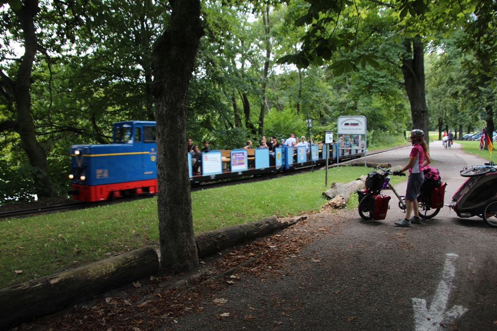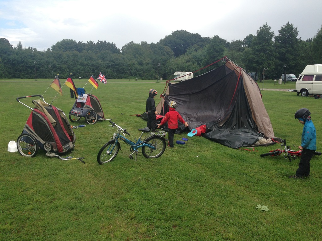 Whilst riding on this children’s railway around the lake – down came the rain and how the wind blew. Meanwhile back at the campsite… Papa thought that it wasn’t necessary to secure the tent properly…