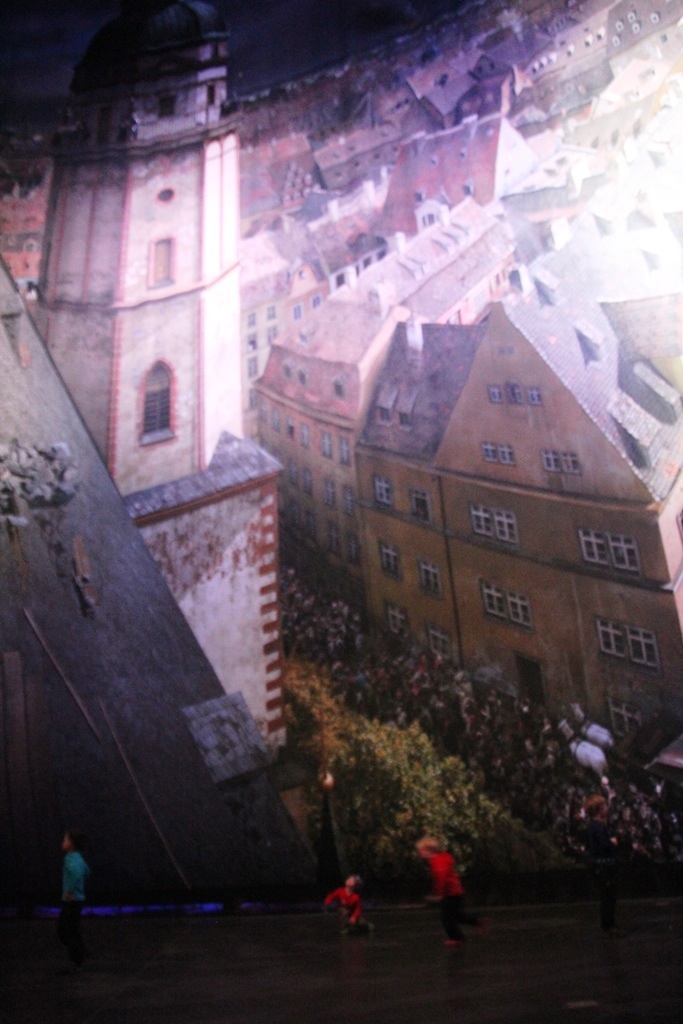 The old gas works has been turned into an amazing piece of circular artwork that surrounds and embraces you from daylight to darkness depicting Leipzig in 1813 after Napoleon left the city. The boys were most astounded by all the fires burning and made sure they ranked them all.