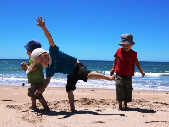 The sea birds are standing on one leg and so why not the boys too…