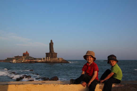At the most southern tip of India – India’s Lands End – from sunrise to sunset a huge statue overlooking the three seas: The Indian Ocean, The Arabian Sea and The Bay of Bengal.