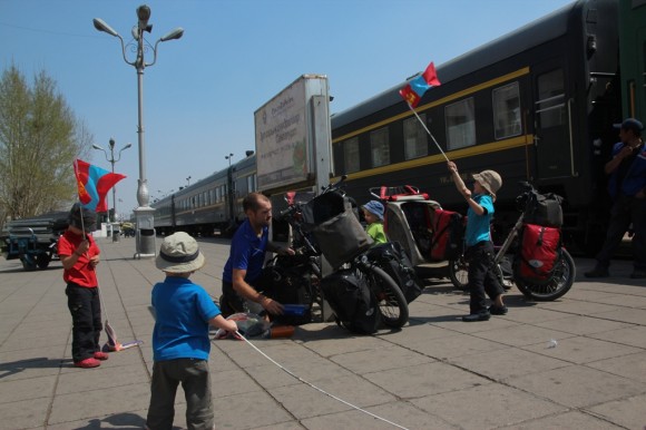 On Mongoian soil – assembling kit at Ulaanbaatar railway station.