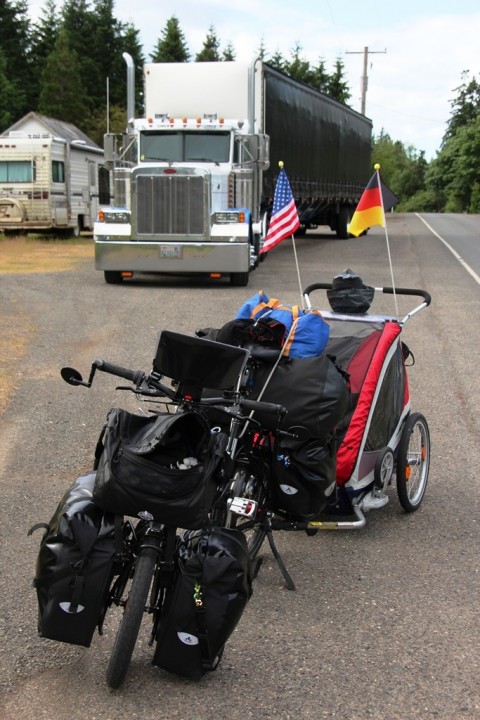 As our Indian Visas are authorized we needed to get moving quicker than by bike to pick them up. So how do you get a lift in the middle of the desert as a family of 6 with 2 bikes, 2 trailers + about 15 pieces of luggage? Just get two pick ups …